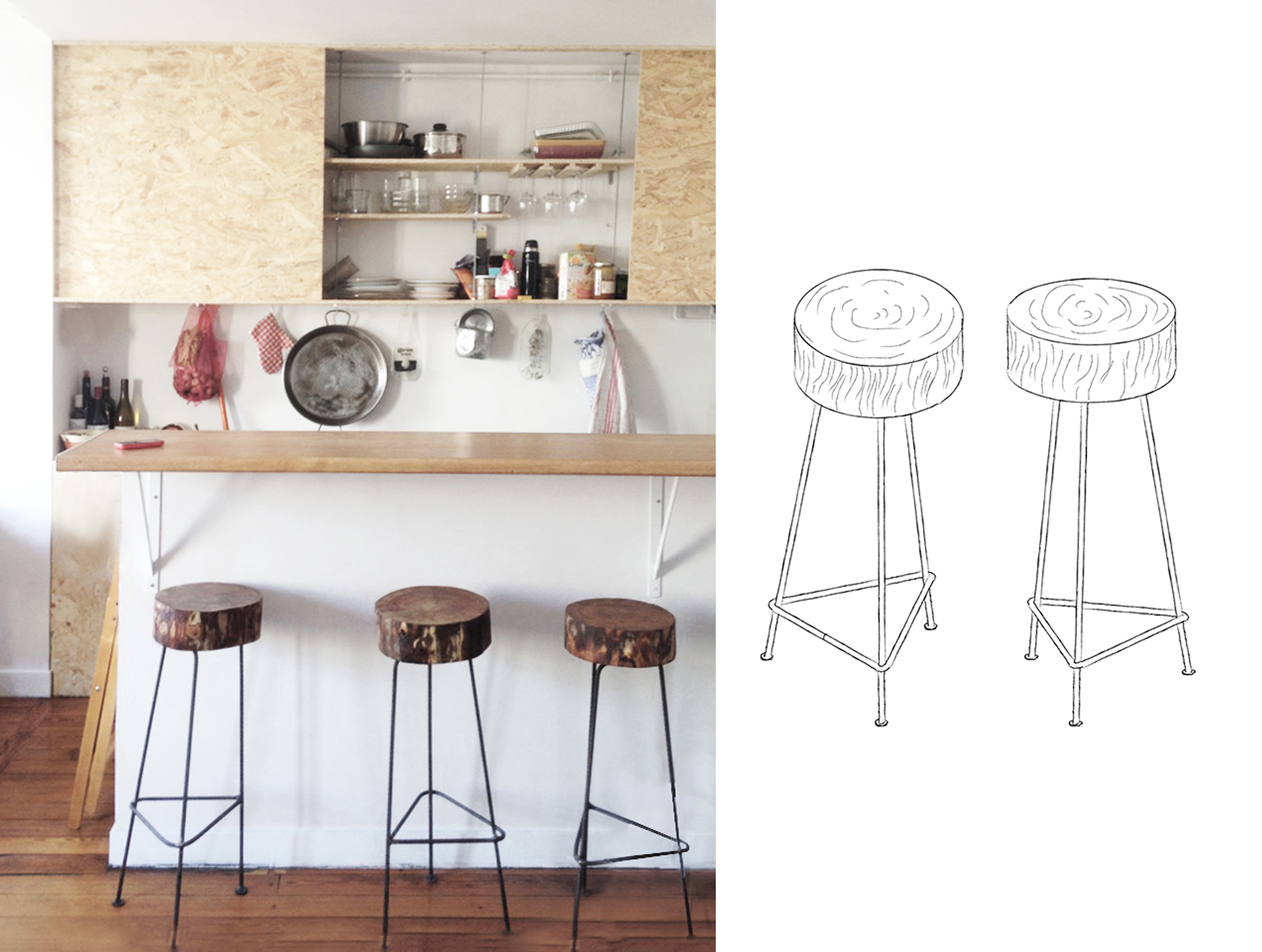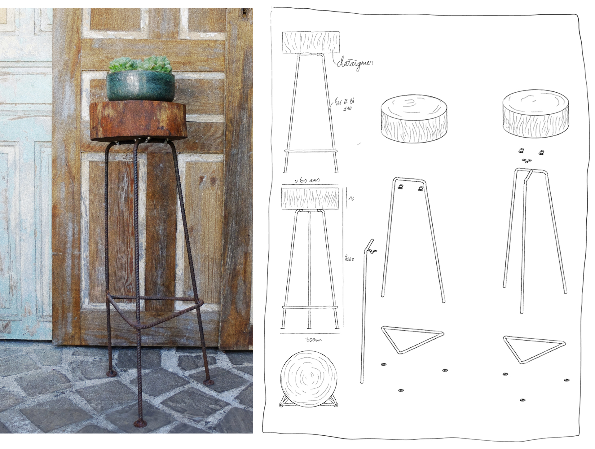 De l’arbre au tabouret, nous souhaitions travailler toutes les étapes de conception jusqu’à la réalisation. De la coupe du bois à la soudure.