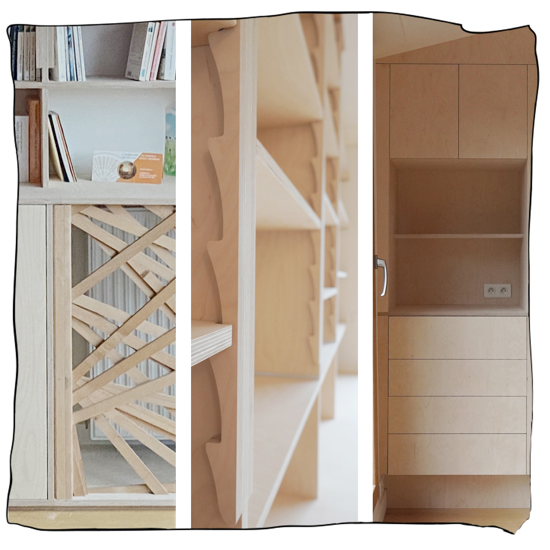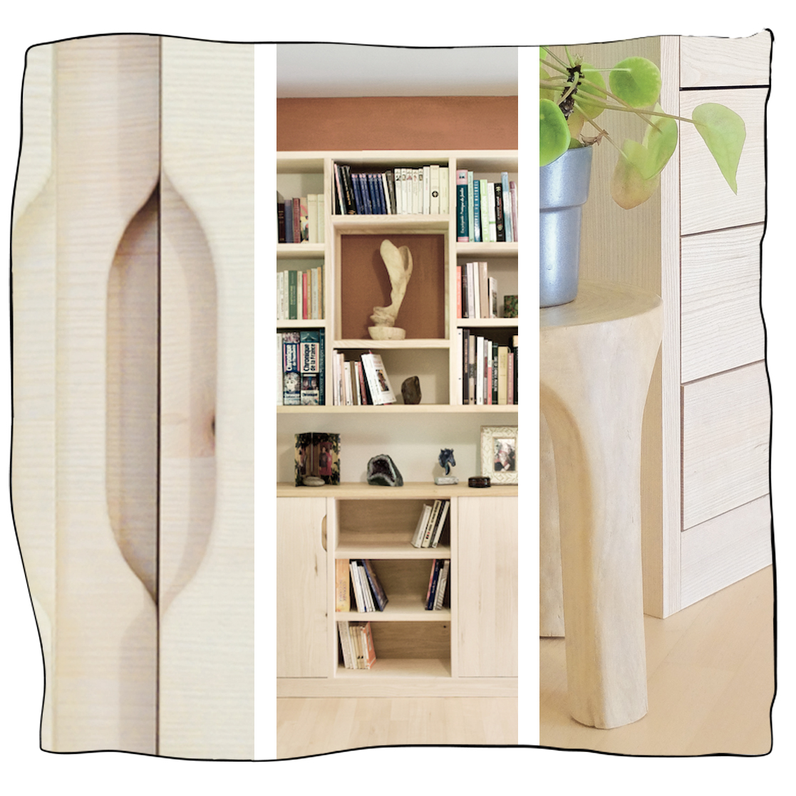 Une bilbiothèque et un bureau en frène